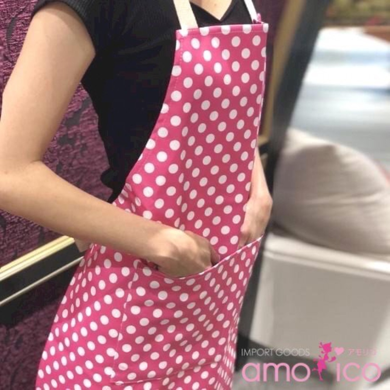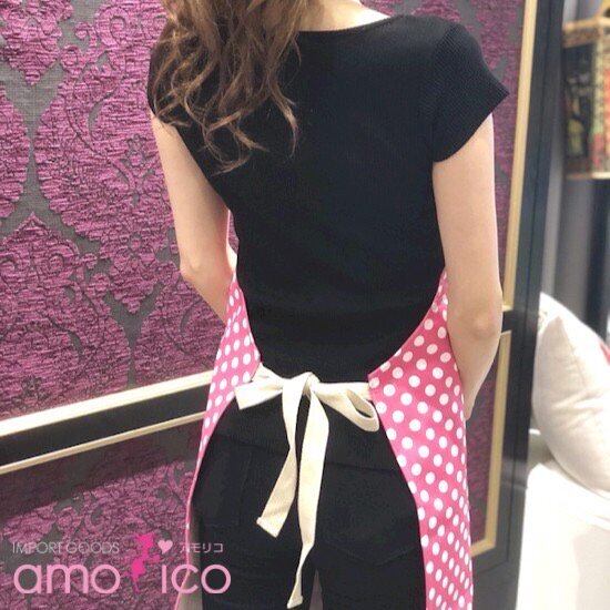 【50%OFF SALE】アモリコ オリジナル(amorico original)PVC ピンクホワイトドット(小) エプロン【アウトレット】⑳